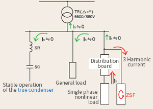The Zero Sequence Harmonic Filter (ZSF) is a semi-permanent filter designed and manufactured to minimize zero-sequence impedance. Therefore, it can keep performance in any positions from the secondary terminal of transformer to the panel board at the end of load, and has an easy-to-install structure.