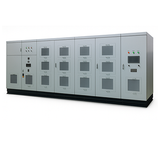 PQ-STATCOMH(SVG)은 재생에너지(RE-100), 철강 등 부하 변동이 큰 계통의 전원 품질을 안정화하는 데 최적화된 장치입니다. CHV (H-브리지) 방식을 적용하여 별도의 승압 변압기 없이도 3.0 ~35kV의 배전 · 변전 계통에 직접 연결할 수 있습니다. 계통과 병렬로 연결된 PQ-STATCOMH은 계통 전압을 실시간으로 감지하고, 무효전력을 자동으로 조절함으로써 선형 제어를 수행하고, IEEE 코드에 부합하는 최적의 전원 품질을 유지할 수 있게 합니다.
