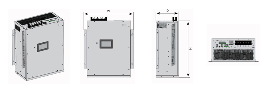 3-레벨 중성점 클램프(NPC) 토폴로지 구조를 기반으로 작동합니다. 기존 2-레벨 토폴로지는 각 상의 단자와 전류 경로에 2개의 IGBT 전력 소자를 사용하여 총 6개의 IGBT로 구성되는 반면, 3-레벨 토폴로지에서는 각 상에 4개의 IGBT를 사용하여 총 12개의 IGBT가 필요합니다. 3-레벨 토폴로지는 출력 단에서 3개의 전압 레벨(+V, 0, -V)를 생성할 수 있어 2개의 전압 레벨(+V, -V)만을 생성하는 2-레벨 토폴로지에 비해 더 우수한 전력품질을 보장합니다. 이러한 특징으로 인해 출력 필터에 대한 최적 설계가 가능하여 제품 사이즈 축소와 고효율 운전을 달성하였습니다.