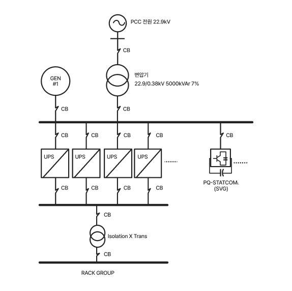 공장, 빌딩, 데이터센터 등 소내 전력망에 PQ-STATCOML 을 적용하면, 단순한 무효전력 보상 이상의 효과를 얻을 수 있습니다. PQ-STATCOML 은 부하 변동 시 발생하는 전압 불안정이나 플리커를 신속하게 보상하여, 계통 내 전력 품질을 향상시키고 전원 설비의 신뢰성과 운전 안정성을 크게 강화합니다.