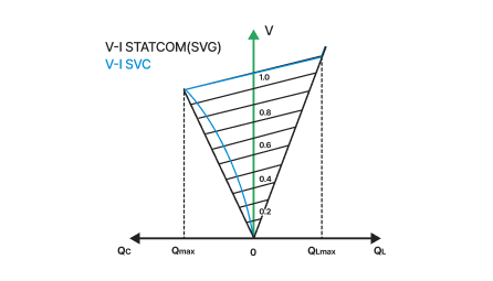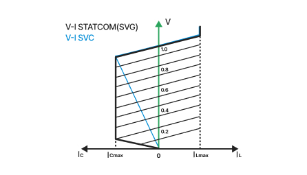 PQ-STATCOML(SVG)는 전압형 컨버터와 IGBT 소자를 이용하여 실시간으로 계통의 전압과 전류를 측정합니다. 측정값을 바탕으로 무효전력의 공급 또는 흡수가 필요한지를 판단하며, PWM 제어를 통해 인버터의 출력 전압 크기와 위상을 정밀하게 조절하여 무효전력의 양과 방향을 정확히 제어합니다. 이를 통해 계통에 필요한 무효전력을 주입(진상)하거나 흡수(지상)하여 신속하게 전압을 안정시키고, 빠른 응답과 연속적인 제어를 통해 부하 변동이나 이상 신호에도 효과적으로 대처합니다.