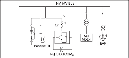 - PQ-STATCOMH 은 대형 전동기, 압연기, 전기 아크로(EAF) 등으로 인한 부하 변동에서 발생하는 무효전력을 실시간으로 보상하여, 전력 손실을 줄이고 목표 전압을 안정적으로 유지합니다. 이를 통해 전력시스템의 효율을 높이고, 에너지 비용을 절감하는 효과를 기대할 수 있습니다.